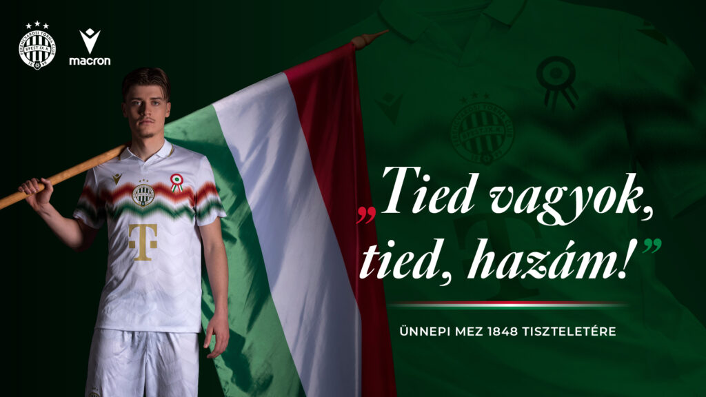 A mellkason és a mez ujján cikkcakkos mintában fut végig a piros-fehér-zöld magyar zászló motívuma, amelyet a mez fehér alapja finom átmenetes mintázatával helyez kortárs, modern köntösbe. Az FTC-címer a mez közepén kapott helyet, míg a szív felett a kokárda motívuma jelenik meg, amely az 1848-as forradalom ikonikus jelképe. A mez limitált példányszámban kerül forgalomba, így valódi gyűjtői darabnak számít a Ferencváros és a magyar futball rajongói számára is.