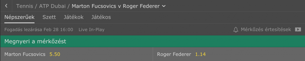 Egyre alacsonyabbak a magyar teniszcsillag oddsai a világ elitje ellen, nem csoda, remek formában van Marci! Azért még Roger a toronymagas esélyes.