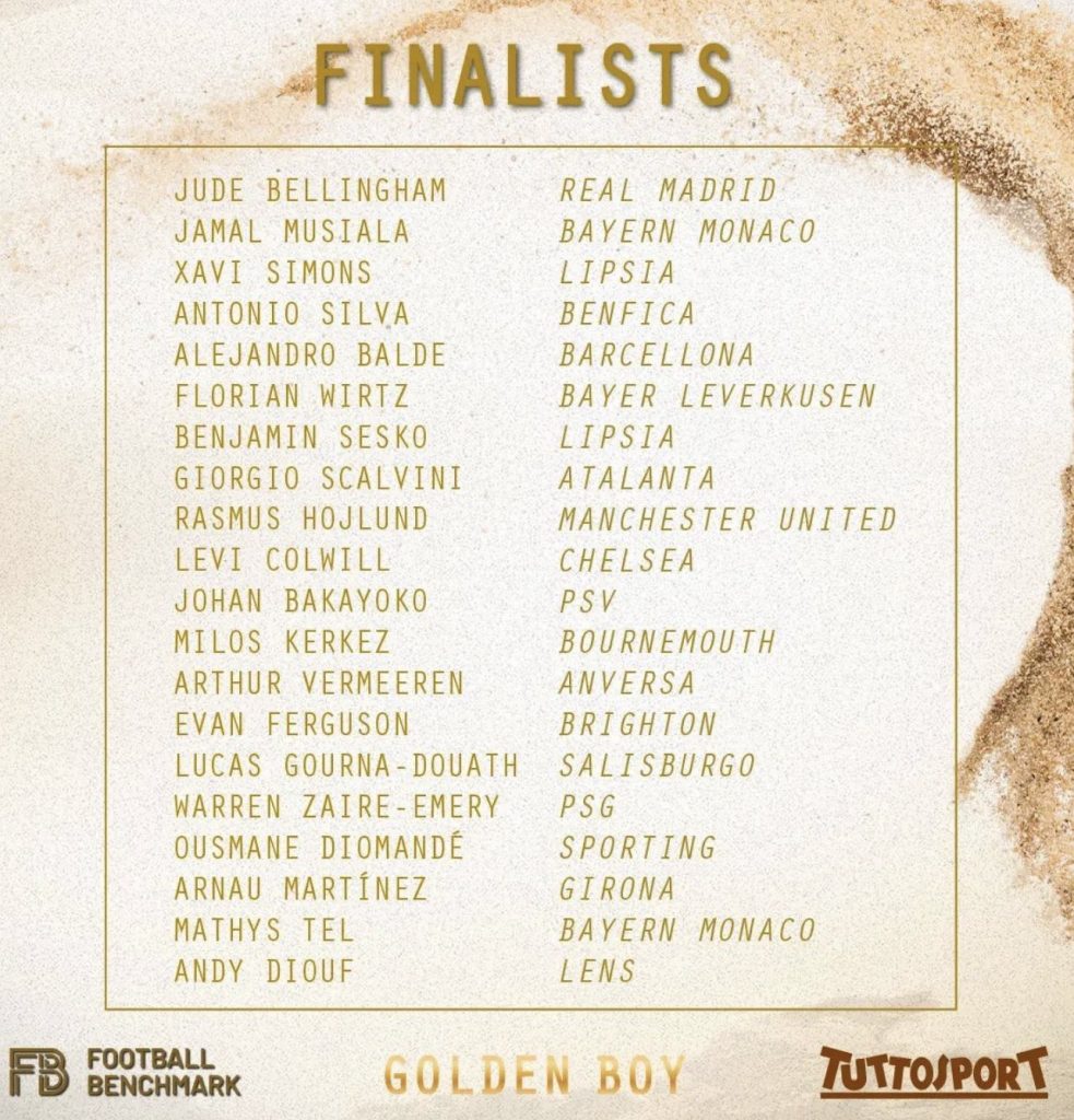 Kiadták a listát a 2023-as Golden Boy-díj 25 futballistájáról, melyben szerepel a Bournemouth magyar védője, Kerkez Milos is.