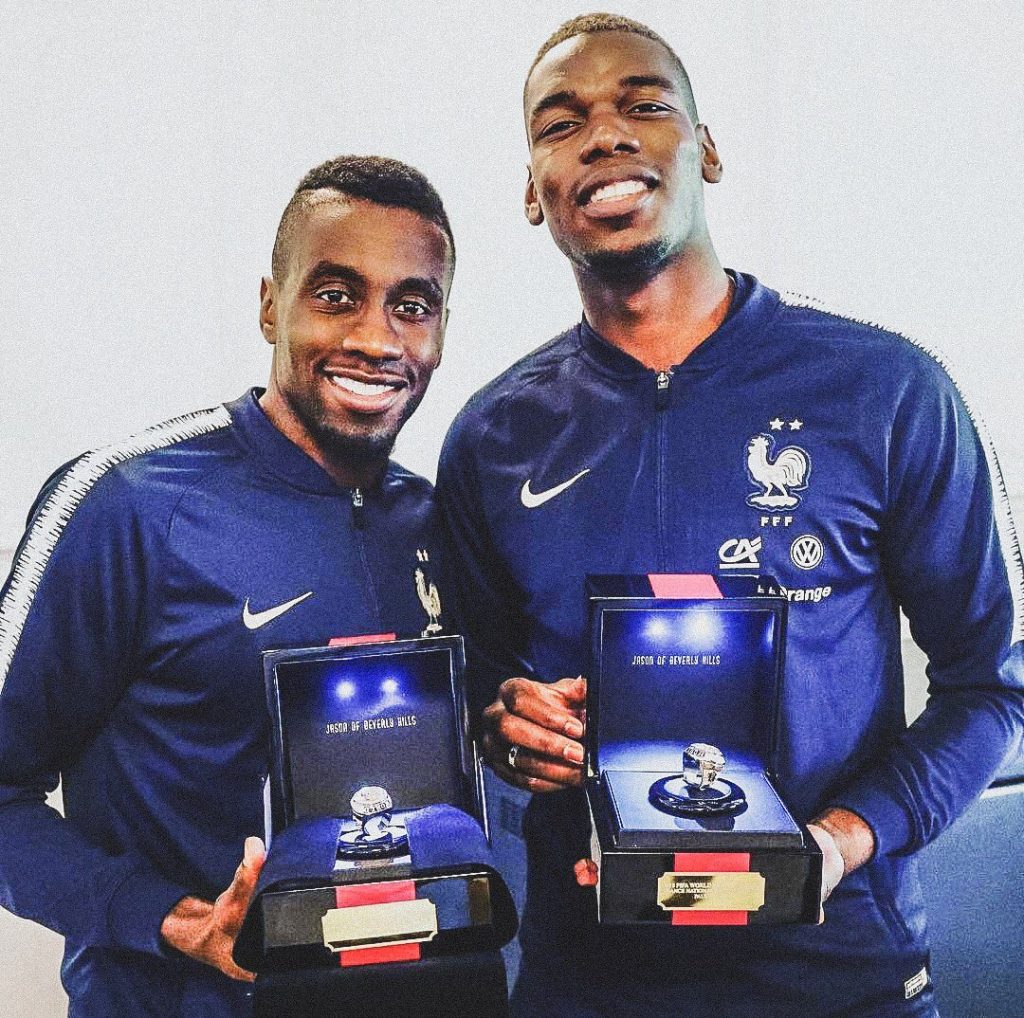 ?? @PaulPogba & @AntoGriezmann bought the @EquipeDeFrance squad rings to celebrate their @FIFAWorldCup. ? They featured the FFF logo on a background of blue, white & red jewels with 'World Cup Champions' on the side. ? Things of beauty.