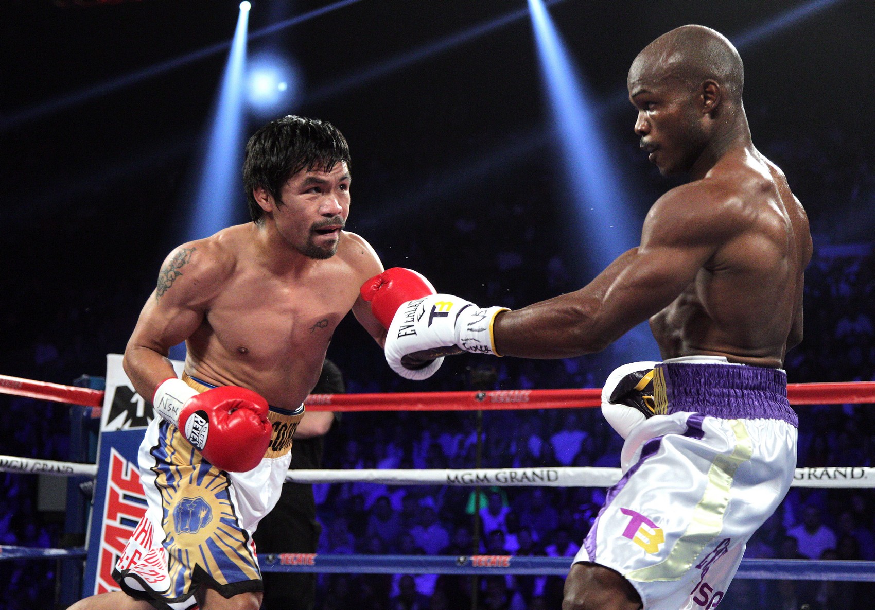 Pacquiao olyan neveket győzött le pályafutása során, mint De La Hoya, Marquez, Mosley vagy Morales. Aztán Mayweather ellen évekig nem jött össze a szupermeccs, majd végül tavaly összehozták a bunyót, de minden idők egyik legjobban várt bokszmeccse dögunalomba fulladt.