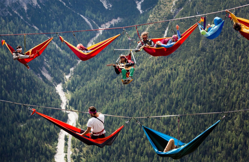 Ha valaki szeret gyönyörű helyeken, csodás levegőn, de olyan magasságban létezni egyetlen kötélen, amelynek a gondolatától is sokkot kap egy kicsit is tériszonyos ember, biztosan örül, ha tudja, hogy vannak még hozzá hasonlók. Ők találkoztak az olaszországi Misurina közelében lévő Monte Piana hegyen megrendezett nemzetközi highline-találkozón.