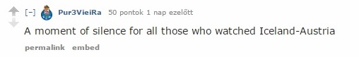 A Redditen elég népes tábor gyűlt össze kitárgyalni a meccs alatt és után az Eb eddigi legérdekesebb mérkőzését, mi pedig kiválogattuk ezek közül a legjobb beszólásokat. Íme.