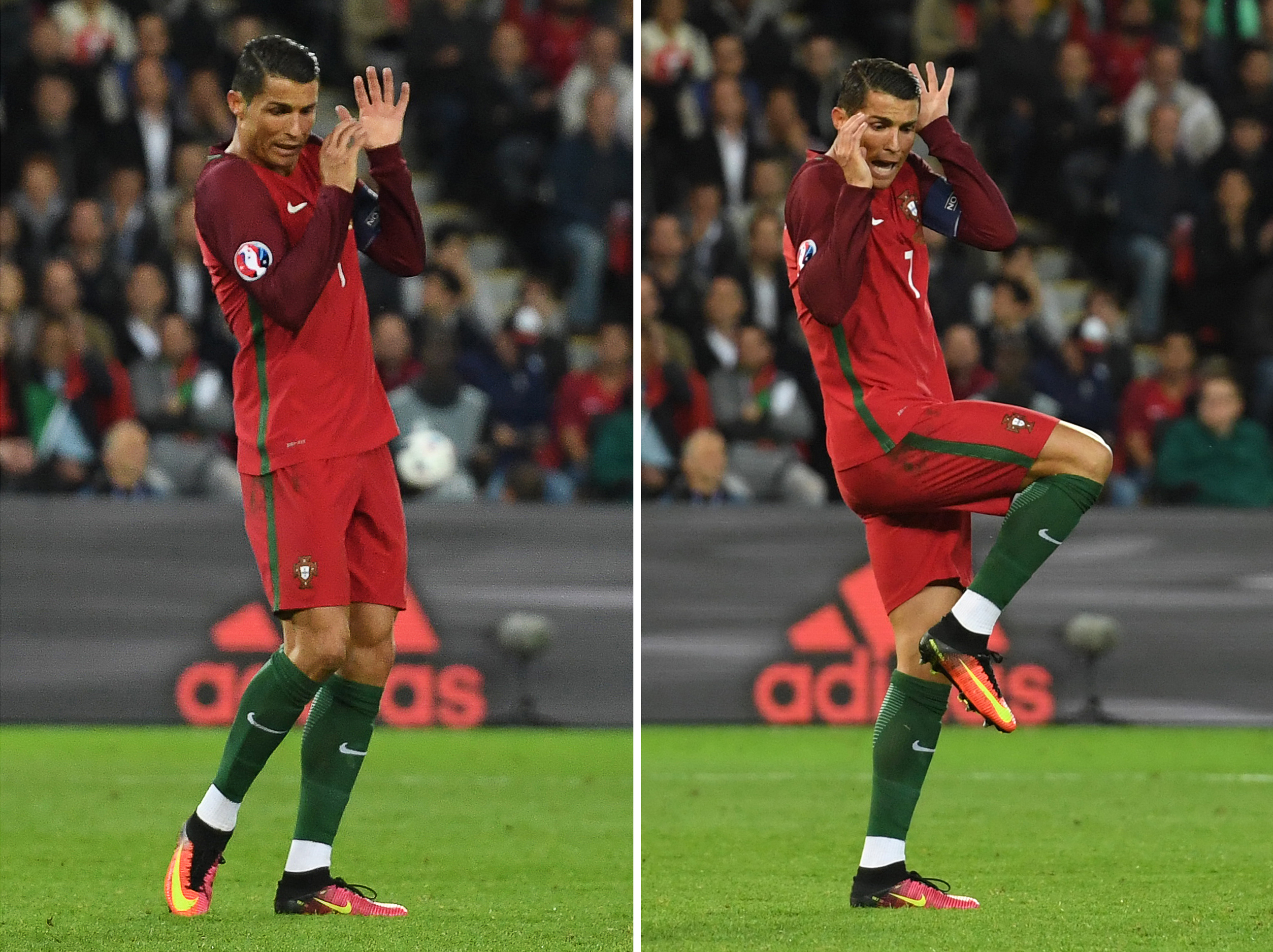 És ezek után még jönnek azok a csúnya mémgyárosok és megkínálják művészi alkotásaikkal Ronaldót ezért a mozdulatáért: