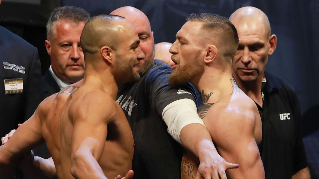 A meccs előtti sajtótájékoztatón McGregor a tőle megszokott módon arcoskodott egy sort, Alvarez pedig arra kérte, kérjen bocsánatot, mert tiszteletlenül beszélt a családjáról, erre Conor csak annyit mondott: „Szopd le a nagy ír golyóimat.”
