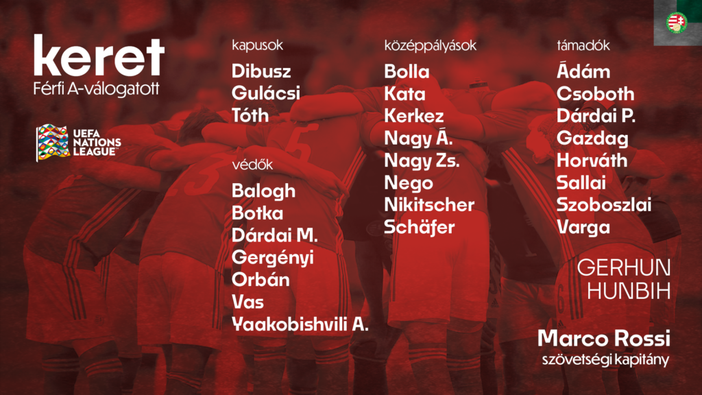 A 26 fős keretbe négy újoncot is behívott Marco Rossi, két Dárdai is ott van, Dárdai Márton mellett Dárdai Palkó is meghívót kapott. Kimaradt többek között az eddig alapembernek számító Szalai Attila, de Lang Ádám, Fiola Attila vagy Callum Styles sem került be.