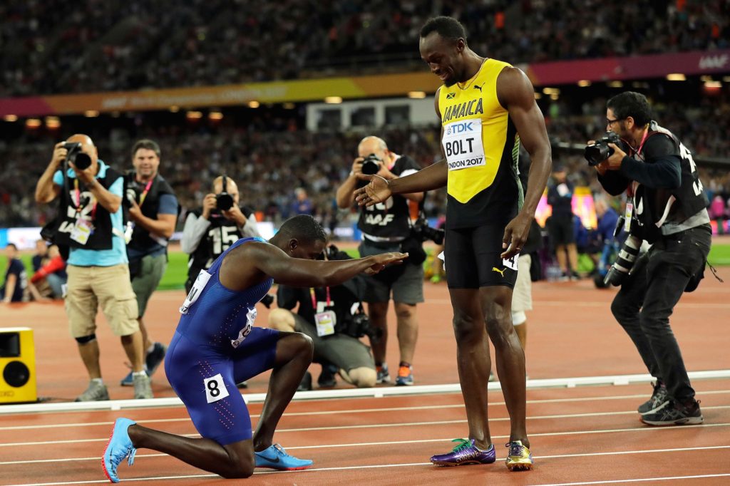 Justin Gatlin & Christian Coleman take 1st & 2nd beating Usain Bolt in his final 100m race...he came 3rd. Still bows out a legend #GOAT https://t.co/RGGAPeeV7F