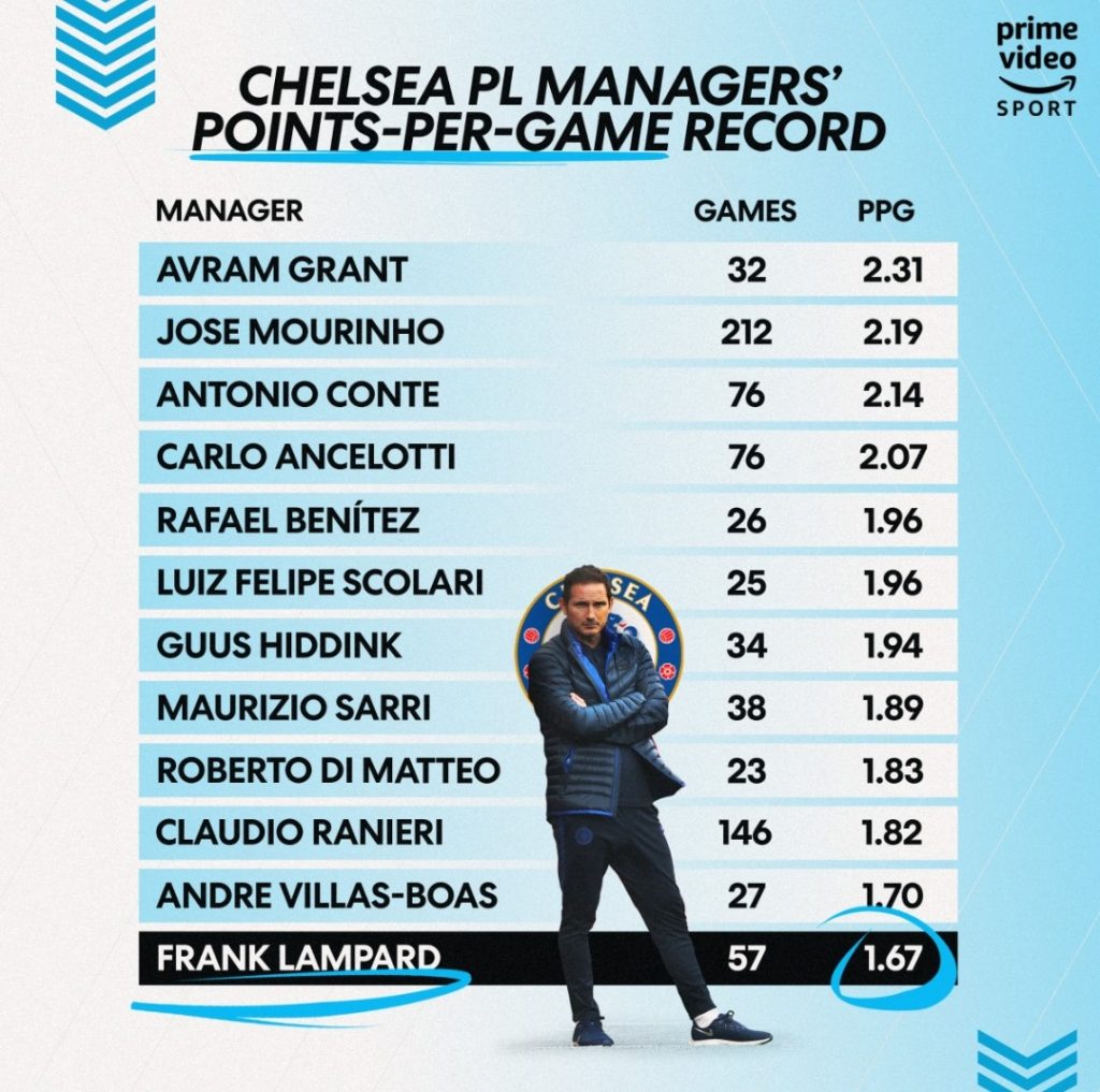 A játékoslegendáé a legpocsékabb győzelmi arány az Abramovics-éra alatt, mindössze 1,67 pont szerzett meccsenként. Összesen 141 meccsen irányította a kékeket, 70 győzelem mellett 30 döntetlen és 41 vereség a mérlege.