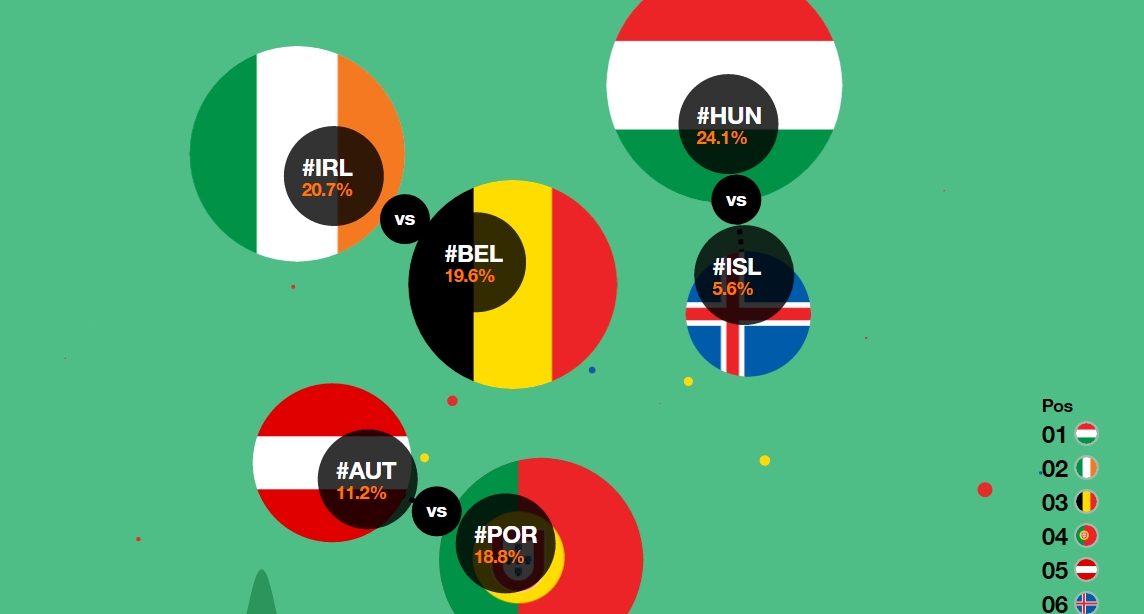 Az Orange nevű cég játékában az Európa-bajnokság alatt minden nap annak a válogatottnak a színeivel világítják ki az Eiffel-tornyot, amelynek a nevét a legtöbb alkalommal említik Twitteren, Facebookon vagy Instagramon.