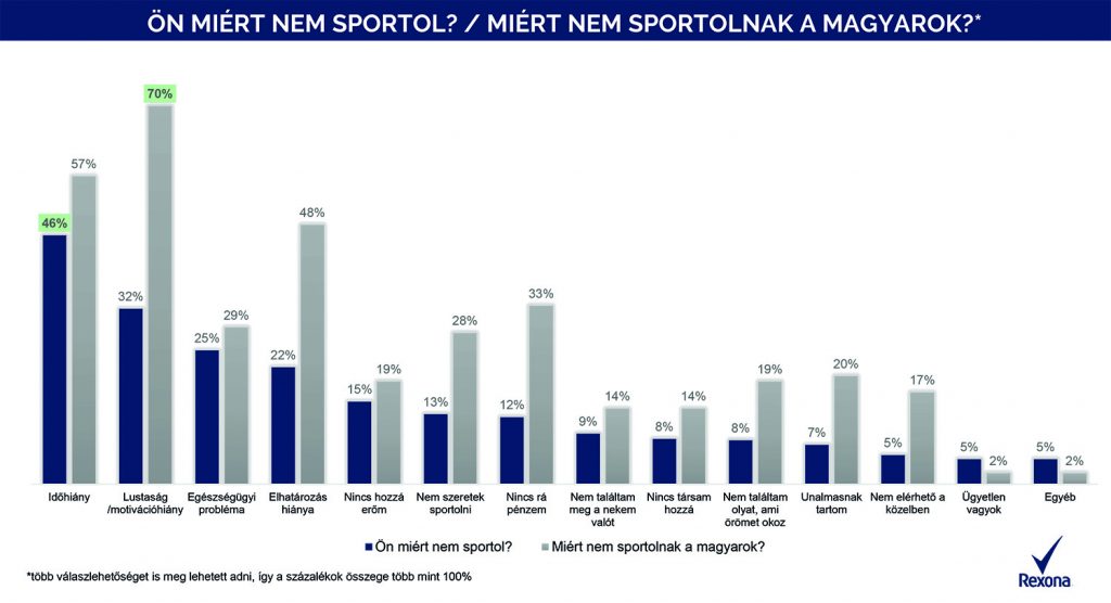 Megállapítható, hogy önmagunkkal szemben megbocsátóbbak vagyunk, míg másokkal szemben kritikusabbak. Azok ugyanis, akik nem mozognak, saját maguk esetében a leggyakrabban időhiányra hivatkoznak, de ha úgy tesszük fel a kérdést, hogy „Ön szerint a magyarok miért nem mozognak eleget?”, a legtöbben a lustaságot említik indokként, de dobogós még az idő- és az elhatározás hiánya is.