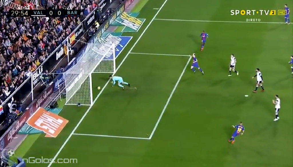 Nem, a Valencia elleni rangadón Messi lövése és Neto kapitális hibája után ugyanis konkrétan lepattant a labda a gólvonal mögött. A hazai játékosok sem akarták elhinni, hogy nem jelzett a játékvezető, így aztán egymást próbálták felrázni, hogy gyerünk előre.