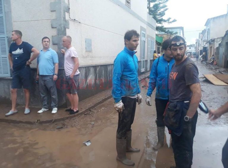 Nadal mallorcai születésű és egész életében ott élt, így nem meglepő, hogy próbál segíteni. Az viszont nem volt elvárható tőle, hogy gumicsizmában, seprűvel a kezében dolgozzon, de ő úgy érezte, hogy meg kell tennie. Mallorcán egyébként szerda éjjel kezdődött a heves esőzés, ami komoly áradásokat okozott: