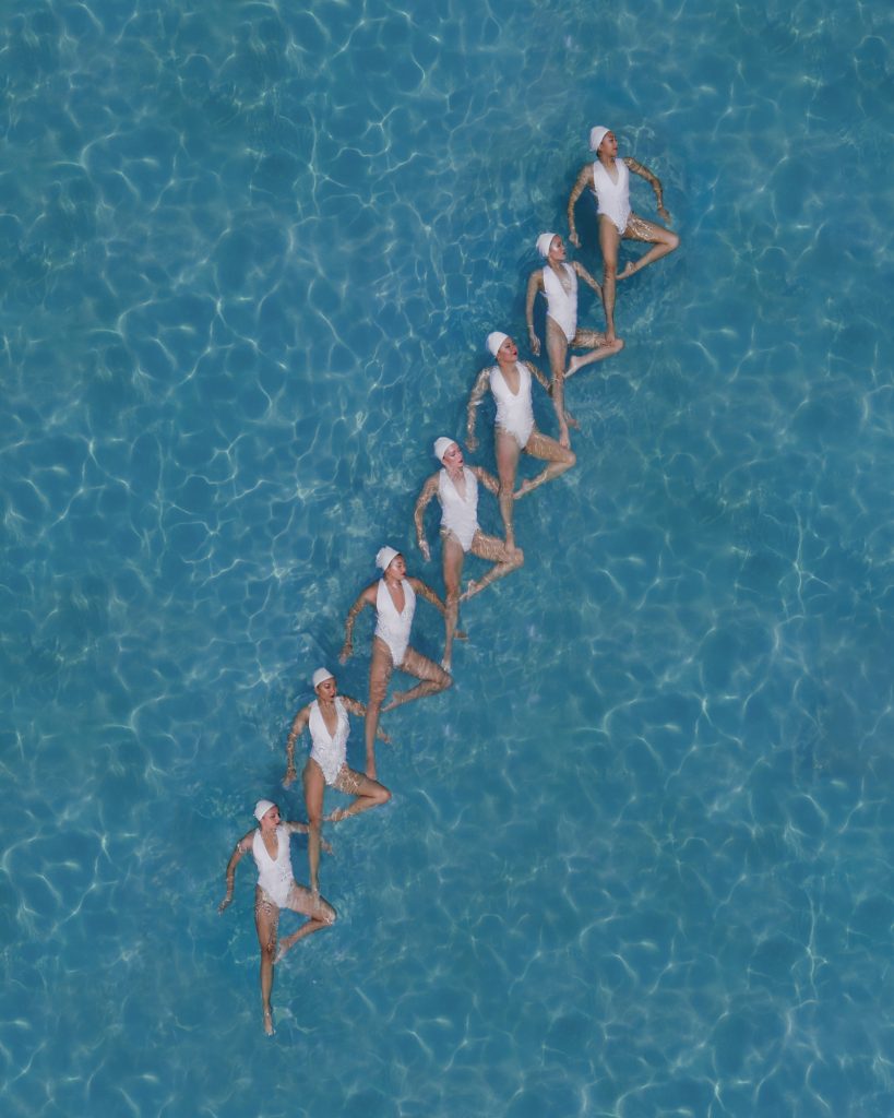 Az elmúlt 5 hónapon át dolgozott egy olyan drónprojekten, ahol felülről rögzítette a szinkronúszást, ami igencsak logikus ötlet, mert így tényleg minden klasszul látszik. És tényleg: