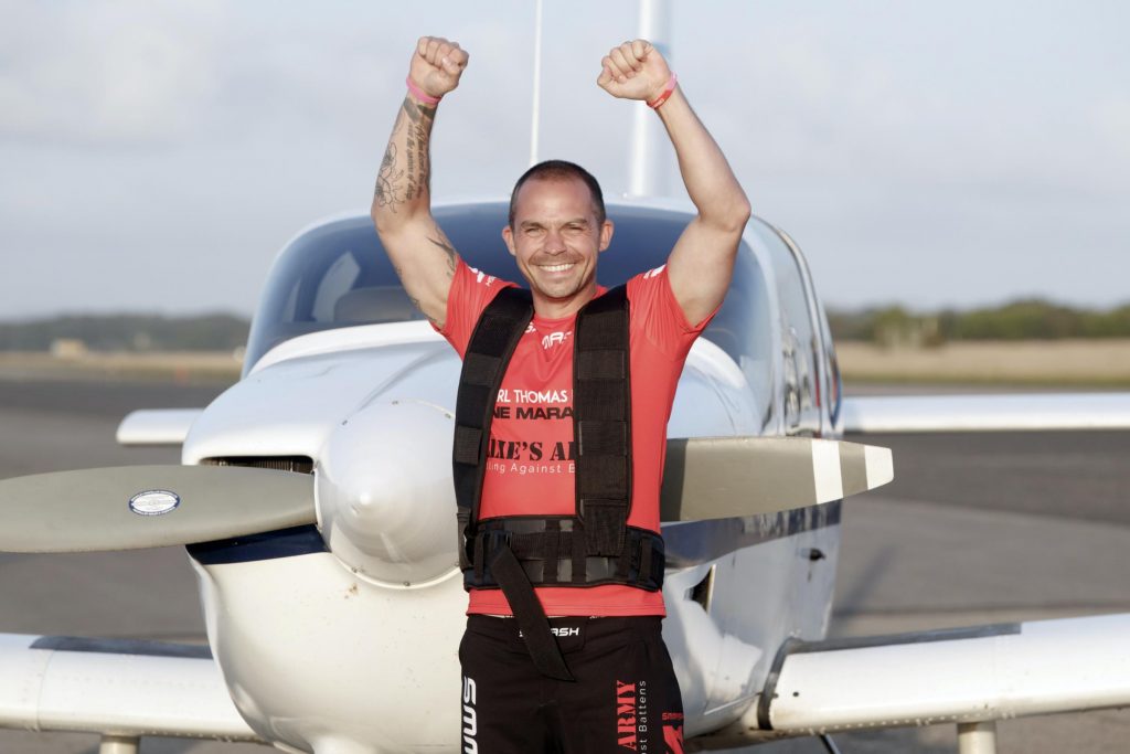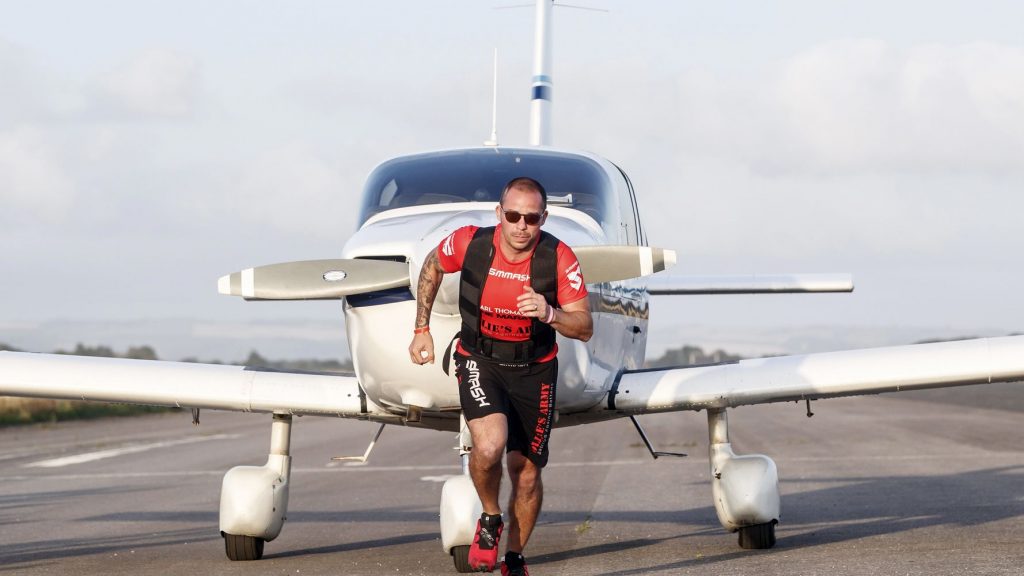 Carl Thomas kick-box bajnok lefutotta a maratont a yorki Elvingtonnál található repülőgép-leszállópályán úgy, hogy közben egy 1,25 tonnás gépet cipelt maga után.