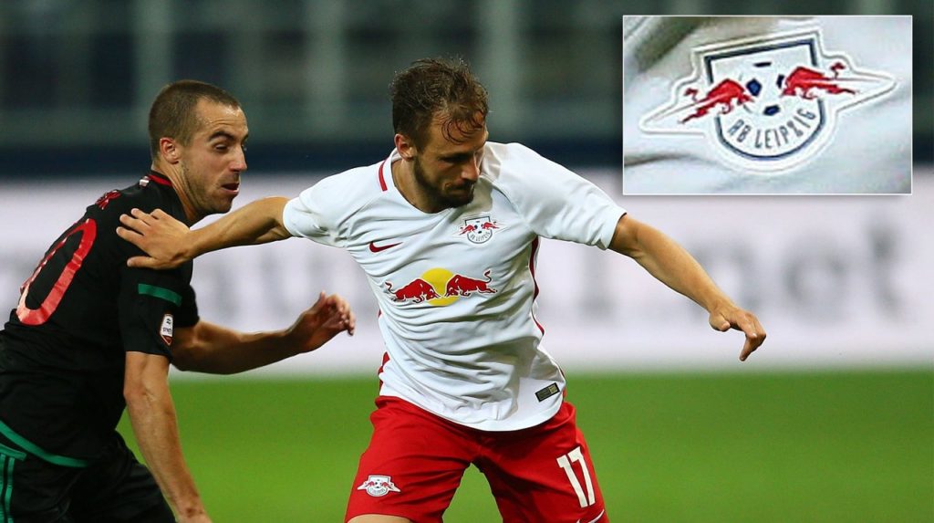 Már ez is necces, de most a BL-re ki kellett venni a sárga kört a Salzburgéból, mert az UEFA (és amúgy a német szövetség) tiltja a szponzori megjelentést a címerben. Így az egyetlen különbség a Salzburg és Leipzig felirat.