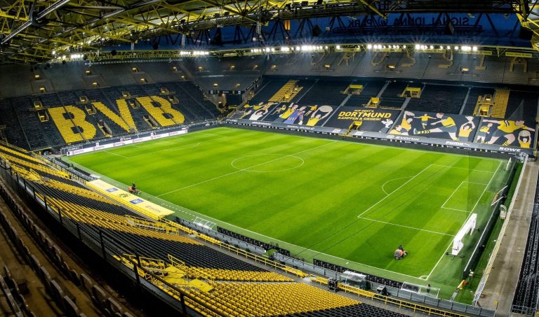 Ahogy a fotón is látszik a Dortmund arénája, régebbi nevén a Westfallenstadion.