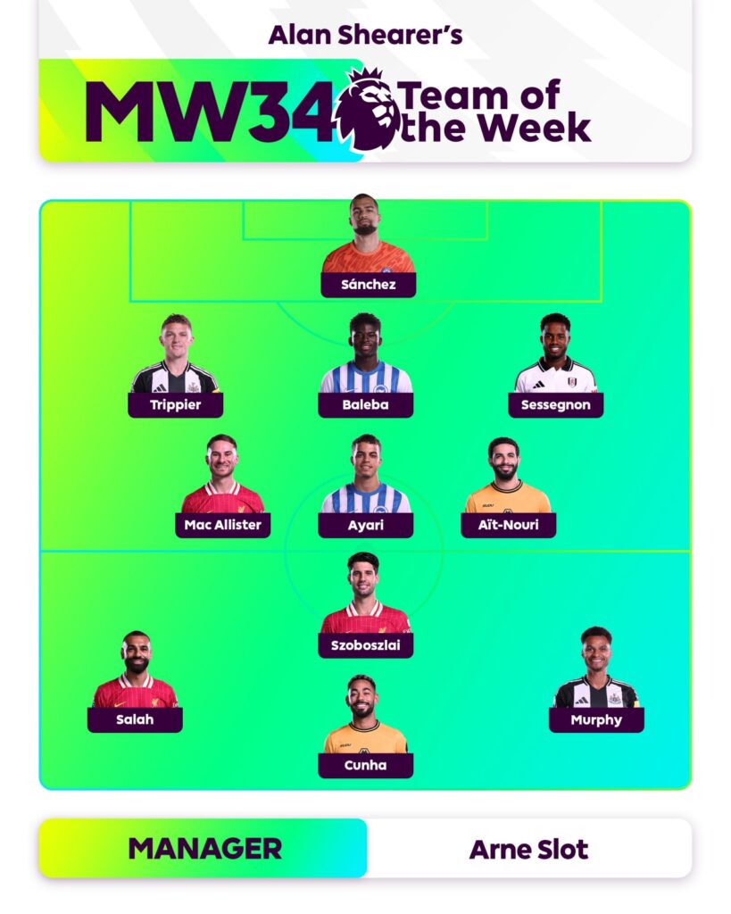 Mellette még két Pool-játékos, Mac Allister és Szalah van ott a forduló legjobb 11 játékosa között, a forduló edzője Arne Slot lett.