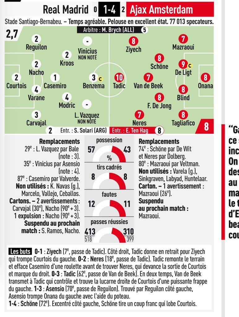 Az Ajax tegnap nagyszerű játékkal ejtette ki a BL-ből a Realt Madridban, a hollandok legjobbja a szerb csatár, Dusan Tadics volt. A L’Équipe el is ismerte a teljesítményét.