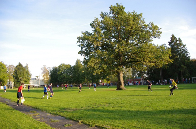 Focizni szinte bárhol lehet, akár egy észt kisvárosában is, ahol a labdarúgópálya kellős közepén egy hatalmas tölgyfa ágaskodik. Kemény!
