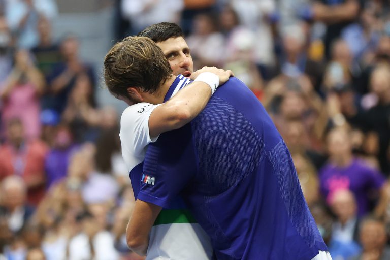 A második kiemelt Danyiil Medvegyev 6:4, 6:4, 6:4-re legyőzte a világelső Novak Djokovicot a US Open férfi döntőjében, amit úgy ünnepelt meg, hogy nagyon sok néző csak a fejét vakarta zavarában.