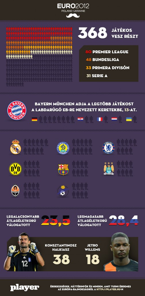 A június 8-án kezdődő, lengyel-ukrán rendezésű Eb-n 368 játékos vesz majd részt. Közülük 80 érkezik a Premier League-ből, ezzel az angol élvonal a legjobban reprezentált liga a tornán. Összehasonlításképp: a Bundesligából 48, a spanyol bajnokságból 33, a Serie A-ból pedig csupán 31 futballista érkezik.