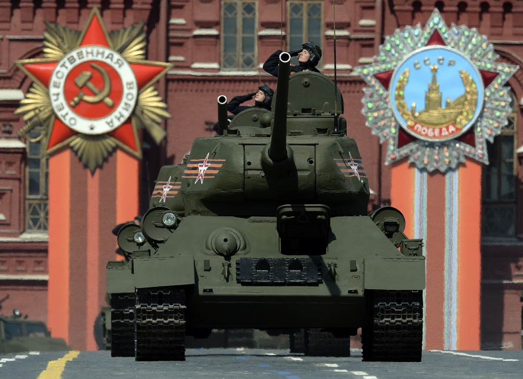 Azért előkerültek az örökzöld klasszikusok is, itt például éppen néhány T-34-es harckocsi gurul végig a Vörös téren.