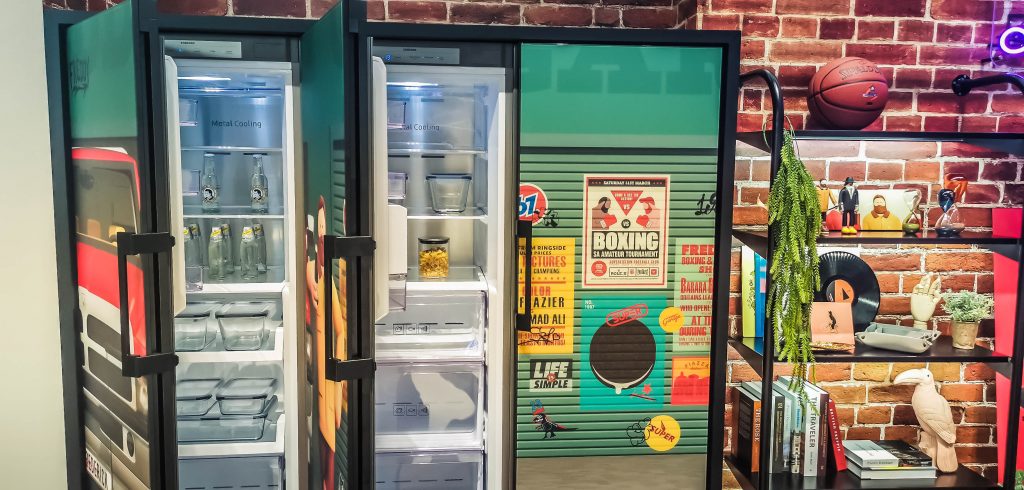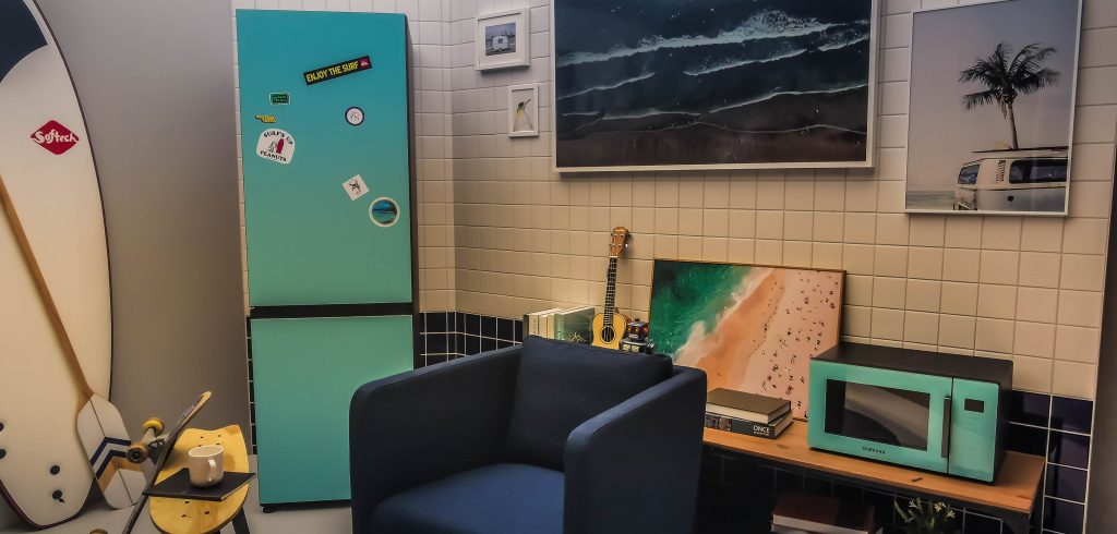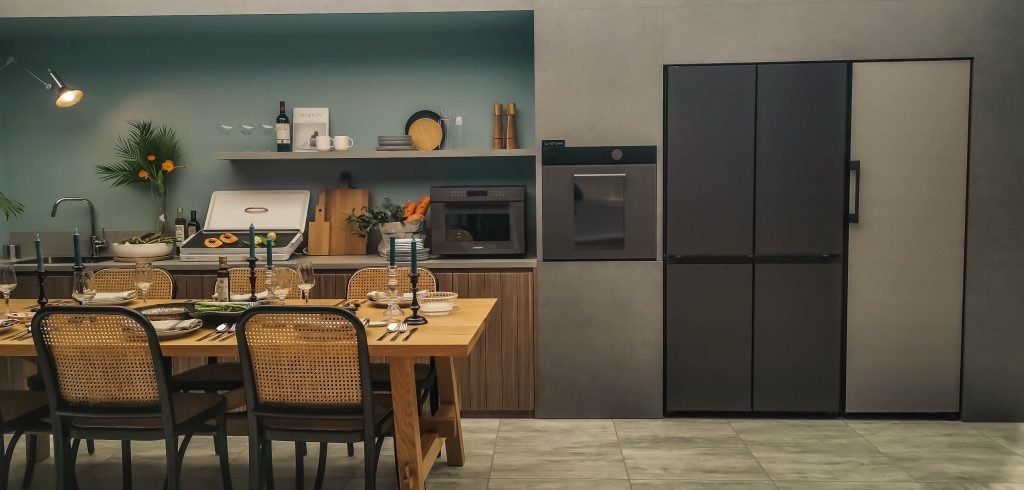 Nehéz lesz, hiszen a Samsung zsírúj Bespoke hűtőinek éppen az a lényege, hogy nagyjából bármilyen környezetbe teljesen észrevétlenül olvadnak be.