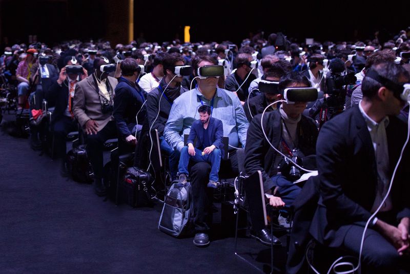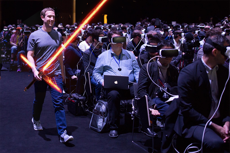 Tegnap osztotta meg Facebook-oldalán Mark Zuckerberg ezt a fotót, ami a Samsung barcelonai konferencián készült. Zuck mosolyogva sétál egy halom VR headsettel felszerelt alak között, ami sokakban egy Mátrix-szerű jövő képét ébresztette, amelyben egy magasabb entitás fogja manipulálni az agyunkat, a valóság helyét pedig egy virtuális valóság veszi át.