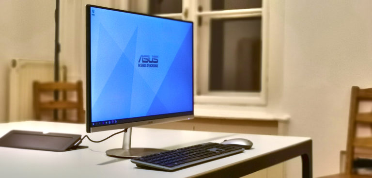 A látszat ne tévesszen meg, a Zen AiO egy teljes értékű asztali PC, ami valóban akkora, mint egy hagyományos számítógépmonitor. Nincsenek eldugott dobozok vagy oldalról nézve vállalhatatlanul vastag monitor, tényleg ekkora az egész gép. Bluetooth-os billentyűzetet és egeret csatlakoztatva hozzá mindössze egyetlen vezetékre van szükségünk, így bátran kijelenthetjük, hogy a Zen AiO a számítógépezés legletisztultabb módját kínálja nekünk.