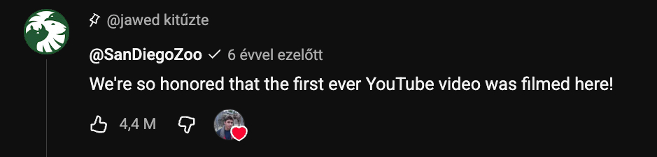 Hat éve a San Diegó-i állatkert is hozzászólt a videóhoz a kommentszekcióban, azt írták, hogy „nagy megtiszteltetés számunkra, hogy itt forgatták az első YouTube-videót”.