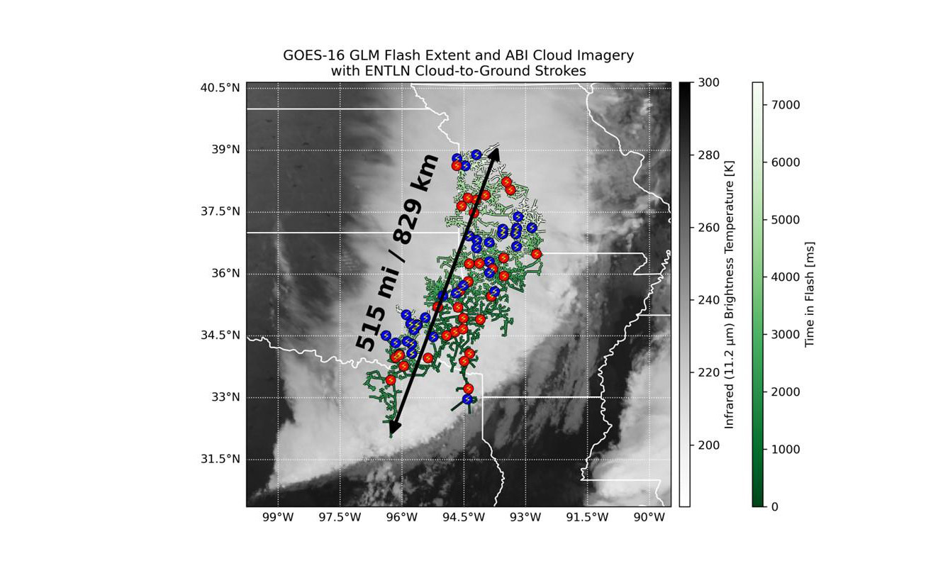 A Meteorológiai Világszervezet (WMO) múlt hét csütörtökön hitelesített egy 829 kilométeres megavillámot, amit még 2017. október 22-én észlelték egy heves vihar során, és ami Texas keleti részétől egészen Kansas City környékéig húzódott, ez nagyjából a Párizs–Velence távolságnak felel meg. Ez lett a világ leghosszabb villámja.