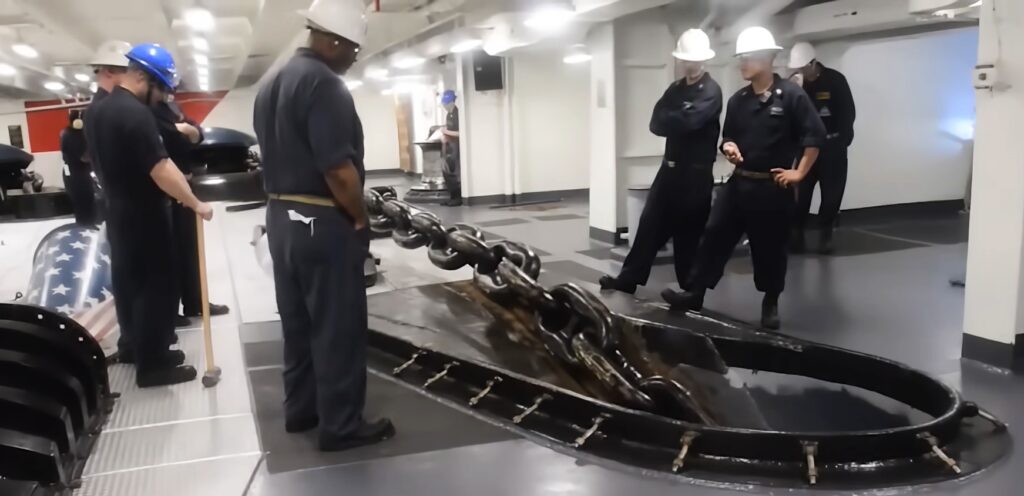 Ez a videó viszont egy teljesen békés, józan jelenetet mutat meg: amikor egy anyahajó leereszti a horgonyt.