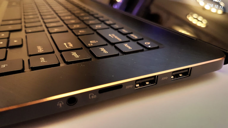 A Zenbook Pro 15 természetesen a screenpaden túl is egy egészen kiemelkedő ultrabook, amit Magyarországon nyolcadik generációs Intel i7 és i9 procival, FullHD kijelzővel, Nvidia GeForce GTX 1050 és 1050 Ti videokártyával és 16 GB RAM-mal lehet kapni. Emellett természetesen van benne háttérvilágítás, az Asustól szinte már elválaszthatatlan Harman Kardon hangrendszer, és külön öröm, hogy a mindössze 1,89 cm vastag laptopba befért két USB-C, két hagyományos USB, egy HDMI és egy jack-csatlakozó, valamint egy microSD-kártyaolvasó is.