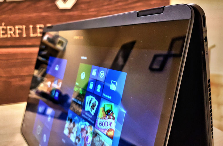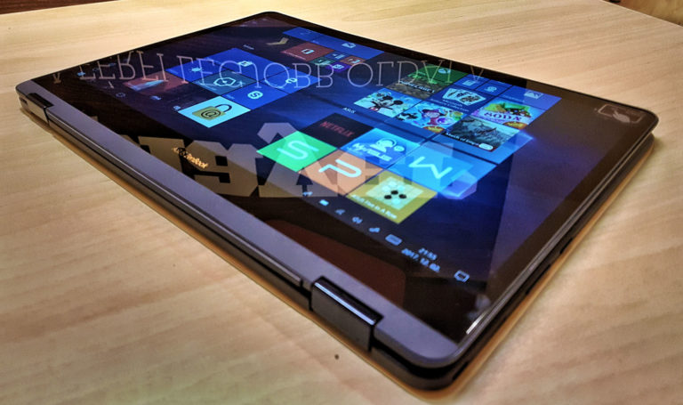 A 360 fokban fordítható kijelző legnagyobb előnye persze nem a sátor forma, hanem hogy a képernyőt teljesen visszahajtva egy teljes értékű táblagépet kapunk, hiszen a Windows 10 rendszer ilyenkor automatikusan felajánlja, hogy átválthatunk táblagép módba. A Flip S méreteinek köszönhetően a táblagépünk nem lesz sem kezelhetetlenül nagy, se elviselhetetlenül nehéz: az 1,1 kilogrammos tömegű és 13,3 colos képátlójú gép méretre nagyjából megegyezik az iPad Próval és annyival azért nem is nehezebb.