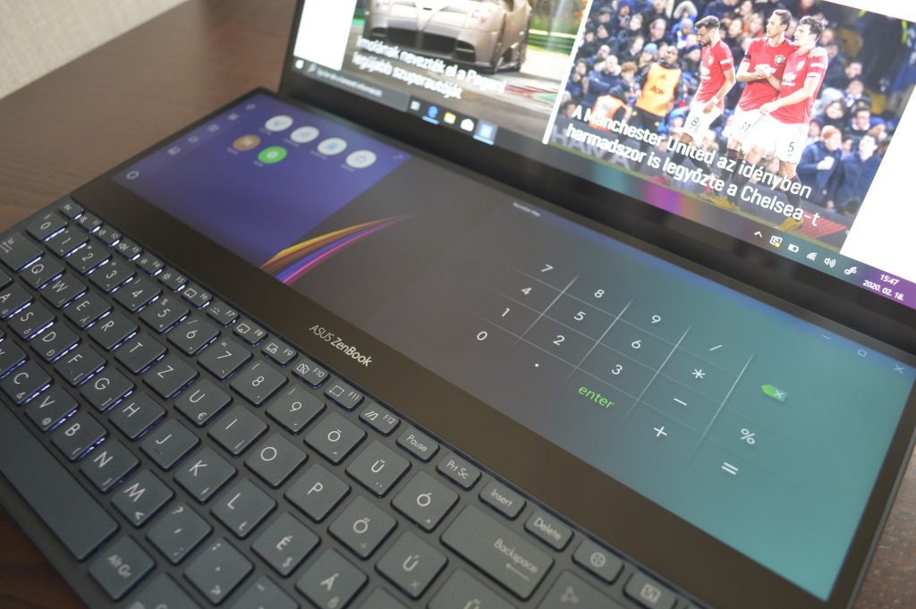 A második kijelző, az úgynevezett ScreenPad Plus nem csak egy átverés, valóban hasznos tud lenni, ráadásul a 3840x2160-as főkijelző mellett ez is 3840x1100 pixeles, tehát nem egy gagyi, alig látható parasztvakítás. A dual 4K-kijelző viszont első használatra eléggé kiboríthatja az embert, de amint pár nap alatt hozzászoksz, hiányozni fog a „sima” laptopodról. De csak akkor, ha tényleg ki tudod használni.