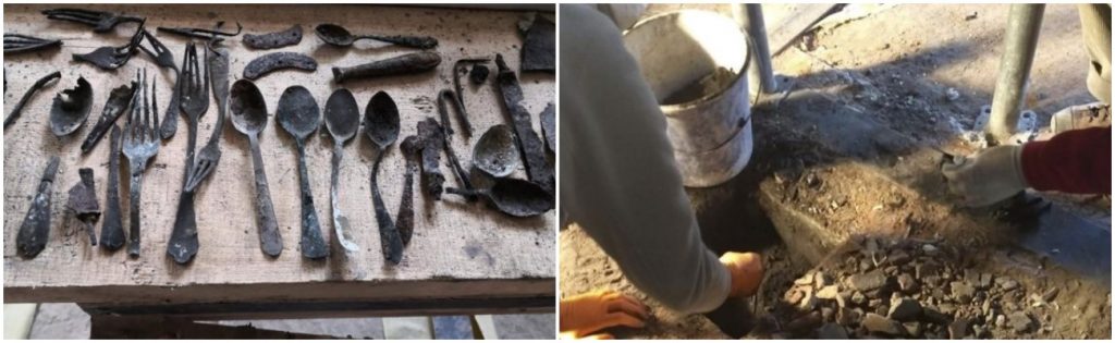 Elrejtett használati tárgyakat, késeket, villákat, ollókat és szerszámokat találtak a hajdani auschwitzi náci koncentrációs tábor 17-es blokkjának kéményében.
