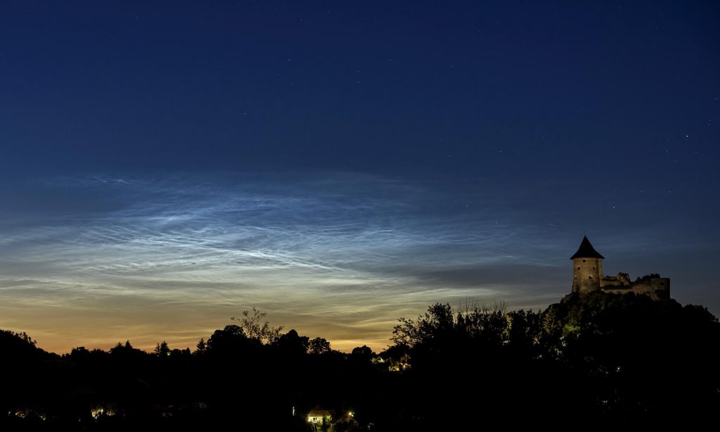 A legújabb képein éjszakai világító felhő látszik a somoskői vár mögött, Salgótarján közelében. A július 5-én észlelt jelenséget a légkör nagy magasságú, 80-85 kilométeres rétegében lévő vízjégkristályok okozzák, amelyek visszaverik a horizont alatt lévő Nap fényét.