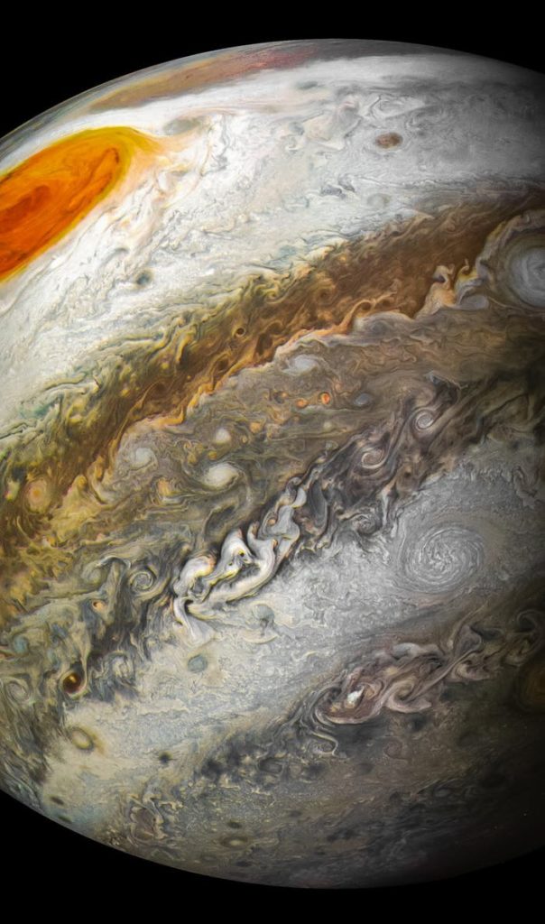 Az új képeken a Nagy Vörös Folt nevű képződmény figyelhető meg közelebbről, ami tulajdonképpen egy Föld méretű anticiklon a Jupiter közepén. Ahogy az már bevett szokás, a NASA számos szakértővel dolgozott együtt, akik tökéletesre csiszolták az eredetileg fekete-fehér képet, szóval ha egyszer sikerülne eljutnod a nagyjából 600 millió kilométerre keringő bolygóhoz, akkor jó eséllyel kábé ezt látnád.