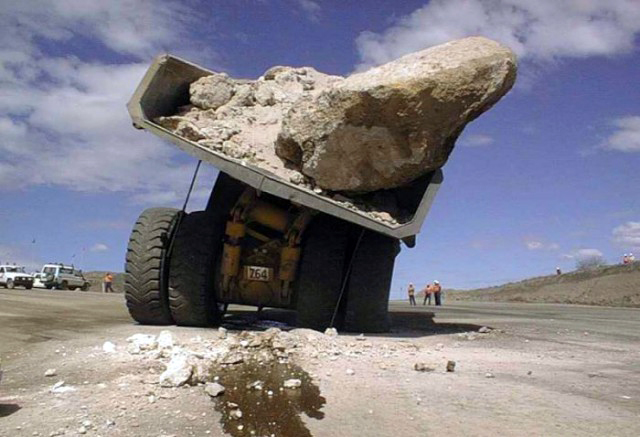 Gigantikus bányadömperekkel gigantikus balesetek történnek