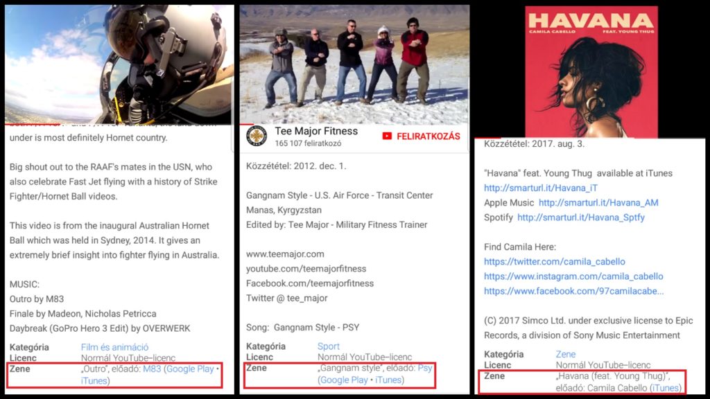 Ezt webes nézetben a videó alatt a "Több" feliratra, mobilon pedig a lefelé mutató nyíl ikonra kattintva érheted el, és a leírás alján találod meg a hivatalos előadót, valamint rögtön linkeket is kapsz a népszerűbb zenestreaming szolgáltatásokhoz, így azonnal meg is hallgathatod a számot. A legjobb, hogy a zeneazonosítás nem csak a hivatalos klipeknél működik, hanem minden videónál, igaz, csak azoknak az előadóknak az esetében, akik használják a Youtube Content ID-funkcióját vagy a kiadójuk szerződésben áll a Youtube-bal.