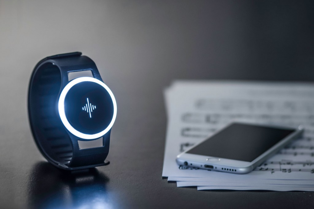 És így jutunk el a Soundbrenner Pulse-hoz, ami a mobiltelefonoknál hatszor erősebb rezgésekkel jelzi a pontos ütemet a dobos csuklóján. Vagya lábán. A tempót a telefonunkon tudjuk beállítani, de ezen a karpánton levő gombbal menet közben is változtathatunk.