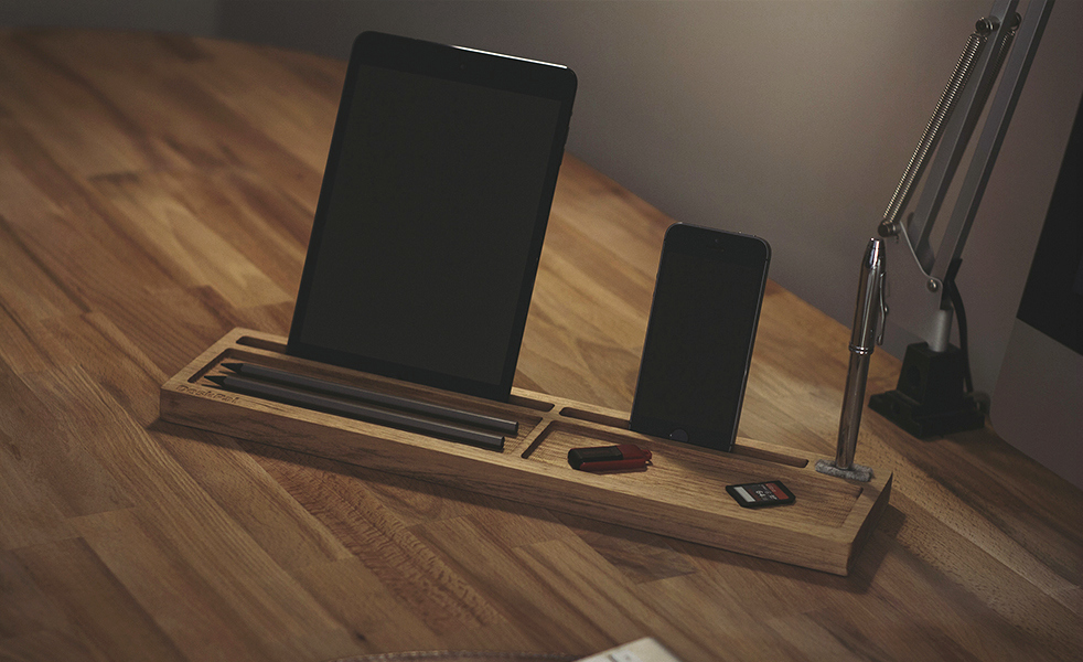 Nem mindenki születhet a rendfenntartás mágikus képességével – és ha az égiek neked sem pont makulátlan otthoni precizitás lapjait osztották, akkor egy stílusos extrával odaadjuk neked a hiányzó jolly jokert. A DeskPal tasmán tölgyből és mélybarna padlófából készült darabjaiban mindennek kivájták a megfelelő rekeszt: digitális arzenálod legtöbb kiegészítőjét (tablet és okosteló számára külön réssel) mind becsúsztathatod a 39x10 centis darabba, de ugyanúgy leszúrhatod a speciálisan íróeszközök számára kitalált lyukba a tolladat is, a maradék bármit, a középső részbe azt, amitől a térdednél fityeg a zsebed. Rusztikus és stílusos darab, ami reméljük segít kibontakoztatni a bizonyosan benned lakozó rendszeretet amint 2014 nyárától megvásárolható lesz.