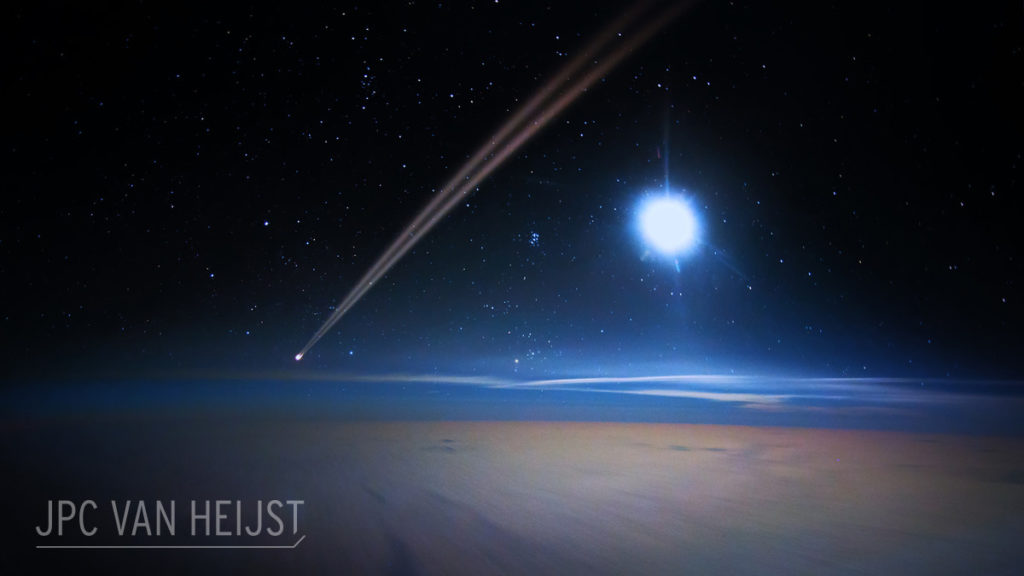 Christiaan Van Heijst hivatásos pilóta, emellett pedig elég profi hobbifotós is, akinek a kedvenc időtöltése a hosszú utak alatt, hogy a műszerfalra tett fényképezőgépével fotózgatja a sarki fényt, a hullócsillagokat, a felhőkről visszatükröződő holdfényt és még sok minden mást.