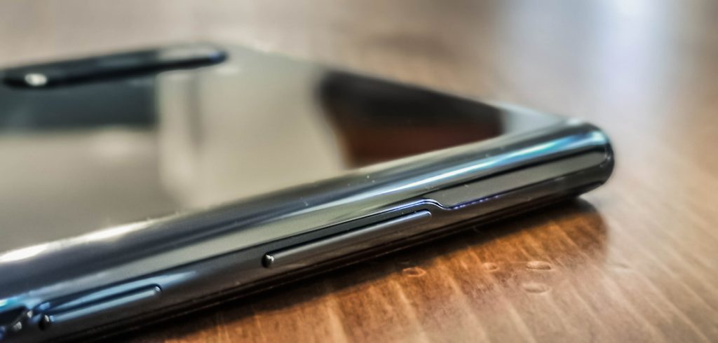 Márpedig játékokat nyüstölni és filmeket nézni a Note 10 Pluson eléggé érdemes: az előlapi kameralyuk középre helyezésével (ezt a részt takarja ki a kezünk, ha a telefont horizontálisan tartjuk) egy olyan hibátlan kijelzőt kaptunk, amire ránézni is öröm. A telefon szerencsére így sem lett túl nagy, hiszen a Samsungnak a felső és az alsó keret minimalizálásával sikerült megoldania, hogy a Note 10+ alig nagyobb, mint a legtöbb mai csúcstelefon. Pozitív fejlemény, hogy a Samsung az S10-hez képest eggyel csökkentette a fizikai gombok számát, bár elsőre kicsit meglepő volt, hogy nem a Bixby, hanem a bekapcsológomb tűnt el. A telefont persze továbbra is ki és be lehet kapcsolni a Bixby és a hangerő le gombok egyszerre történő megnyomásával, de a Bixby-gomb is szabadon átprogramozható, így a legtöbb felhasználónál vélhetően inkább bekapcsológombként fog funkcionálni.