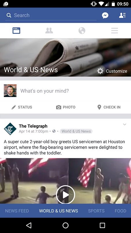 Az egyelőre a Facebook androidos verzióján tesztelt változásból elsőre mondjuk nem sokat fogunk észrevenni, hiszen maga a hírfolyam marad olyan, mint volt, viszont az oldal alján megjelennek a különböző szekciók, amelyekben témák szerint (politika, sport, zene stb.) csoportosítva értesülhetünk a legfrissebb hírekről.
