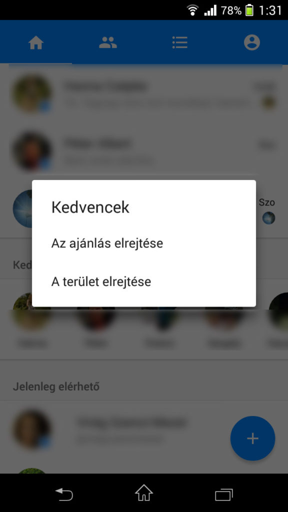 Ha a Messenger kezdőoldalán a Kedvencek között hosszan rányomunk valamelyik ismerősünk profilképére, akkor megjelenik a "terület elrejtése" opció, így egy kattintással kikapcsolhatjuk az összes kedvencet, vagy csak egyet-egyet az "ajánlás elrejtése" gombbal.