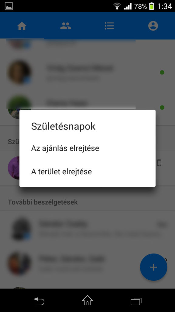 Ha valamelyik születésnapos nevén hosszan nyomunk, megjelennek az elrejtési opciók, így kikapcsolhatjuk az összes születésnapost, vagy csak egy embert.
