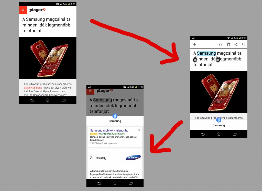 Ez gyakorlatilag ugyanaz a fícsör, mint a webes böngészőben a szöveg kijelölése->jobb klikk->keresés, de még annál is egyszerűbb és kényelmesebb. Egyelőre az androidosok örülhetnek neki, de feltehetőleg előbb-utóbb iOS-en is elérhető lesz.