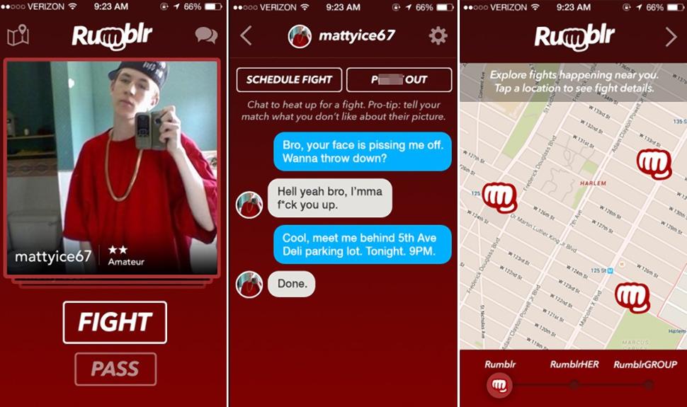 A Rumblr pontosan úgy működik, mint a Tinder, csak éppen míg az utóbbival maximum a lepedőt gyűröd össze a pároddal - ha mákod van -, addig az előbbivel valakinek az arcát gyűrheted össze, ha ő nem teszi ezt előbb a tiéddel.