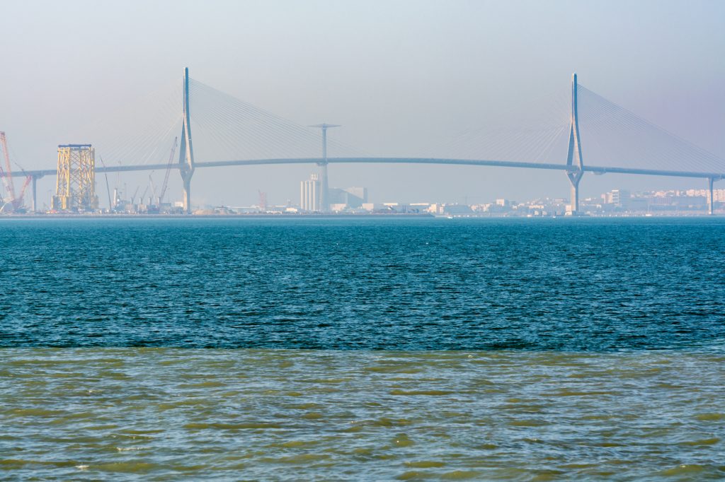 És szintén ugyanez Cadiz mellett, Andalúzia partjainál, ahol a Guadalete és a San Pedro folyók vize találkozik a tenger vizével: